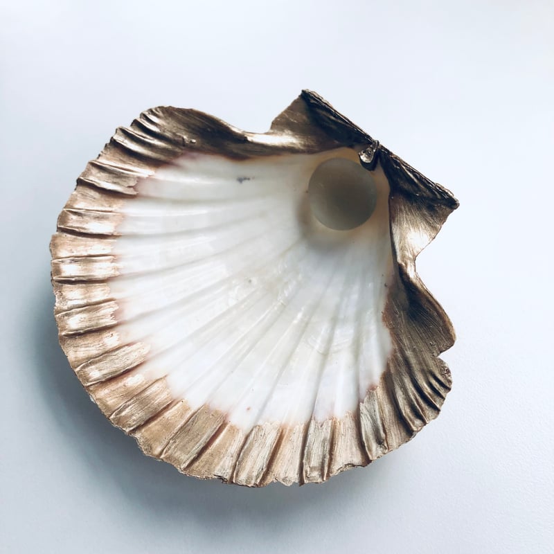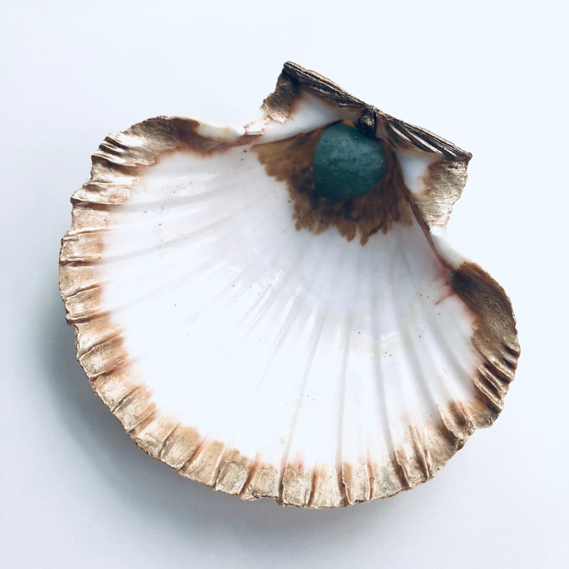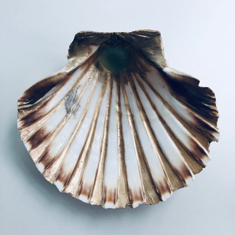 These shells are a by product of the scallops we've eaten at home, have been cleaned and decorated for reuse. I couldn't let them be thrown away!